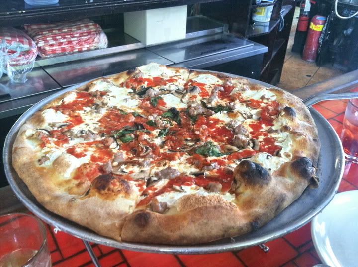 We were able to sit down and order our pizza after 45 minutes in line. Thin and tasty but not full of flavor. It was worth the try but I'm not exactly sure if it was really worth the wait.